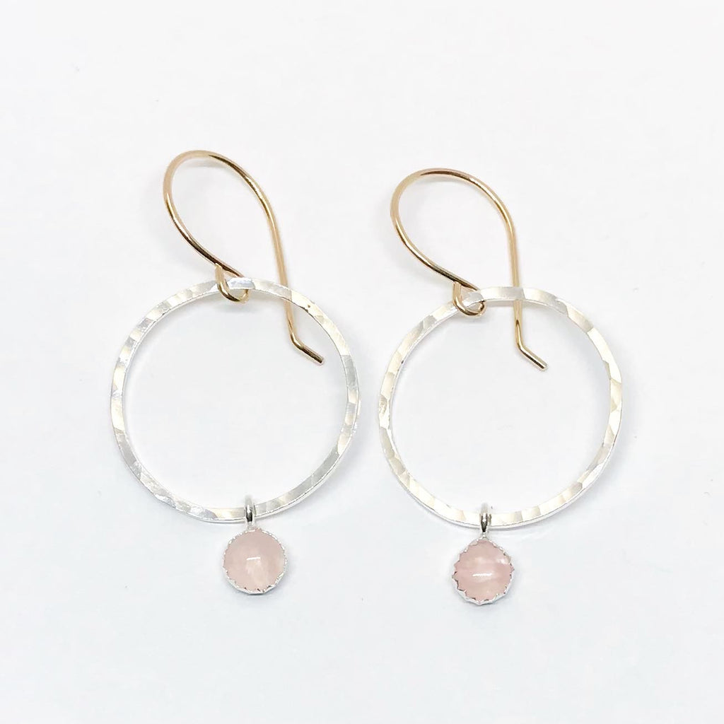 Sterling Silver circle, 14/20 Gold-filled earwire, .999% or Sterling Silver bezel. Select from Amazonite, Jade, Lapis, Amethyst, Garnet, Rose Quartz, or Aventurine.